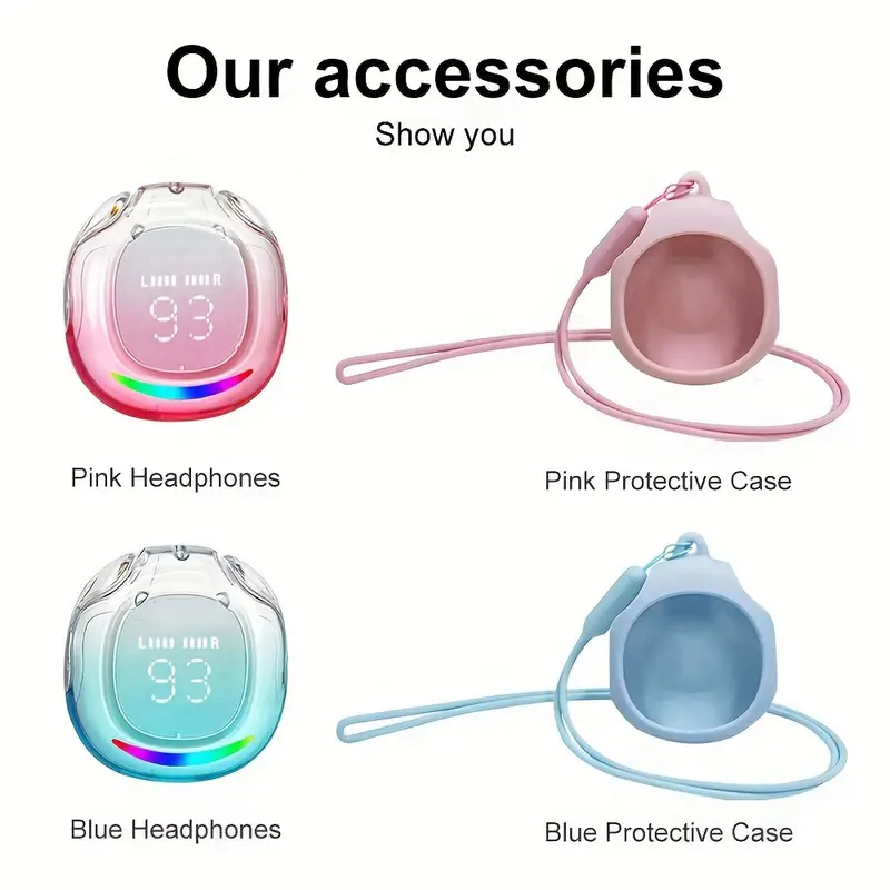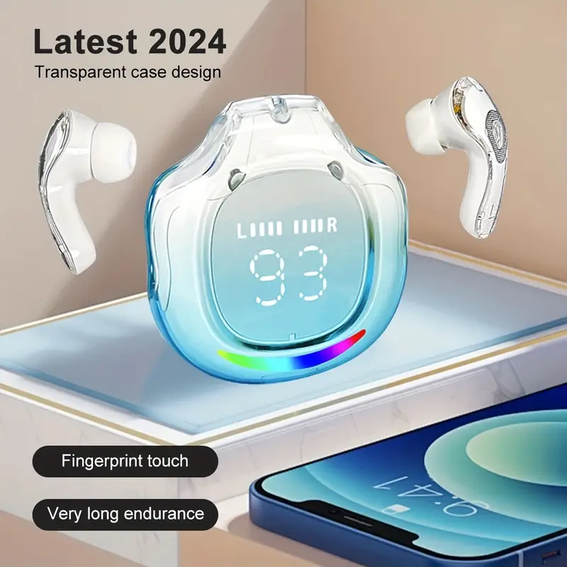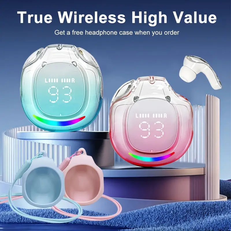 Безжични слушалки за iOS, безжични слушалки, слушалки за игри, станция за зареждане със защитен калъф със силиконов кабел и LED дисплей, подходящи за игри, спорт и офис, съвместими с всички iOS/Android