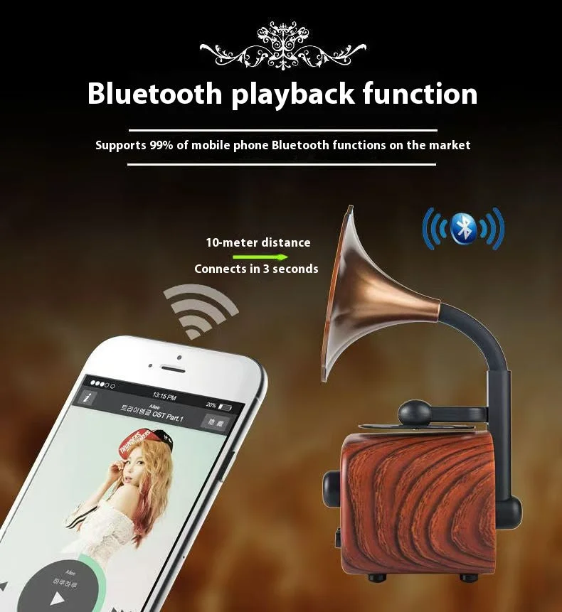 Тонколоната PhonoBloom съчетава перфектно класическа елегантност с модерни технологии, предоставяйки изключително изживяване. Вдъхновена от винтидж грамофони, емблематичната струна „morning glory“ е не само визуално зашеметяваща, но и осигурява богат, плътен и завладяващ звук. Пуснете безжично любимите си плейлисти, позволявайки на това произведение на изкуството да украси пространството ви с вечни мелодии и изискан чар.